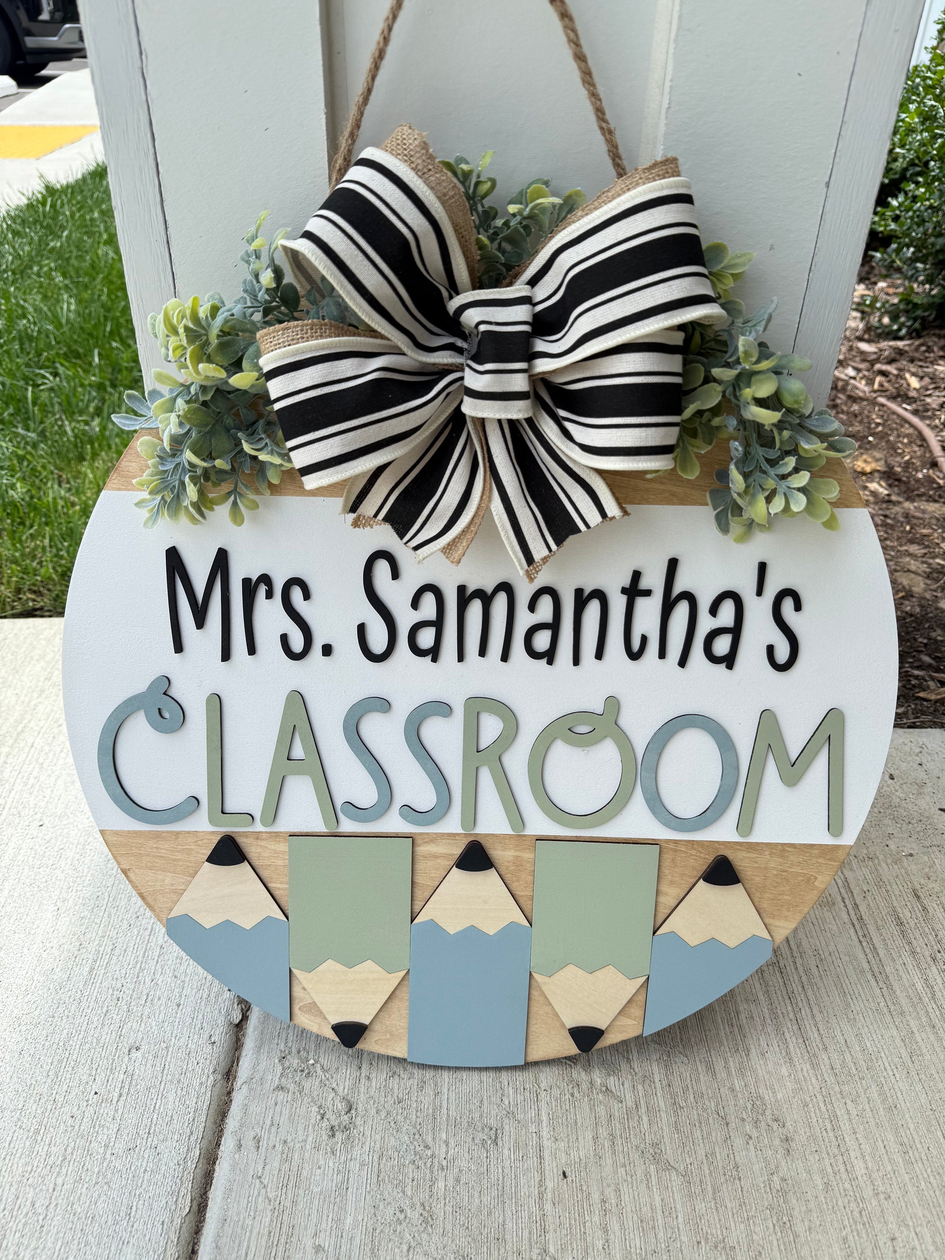 Make your classroom welcoming with this playful Teacher Crayon Door Hanger! Featuring colorful crayons and your name, this quirky hanger will brighten up any classroom. Add a touch of humor to your classroom decor with this fun and unique addition.